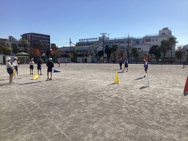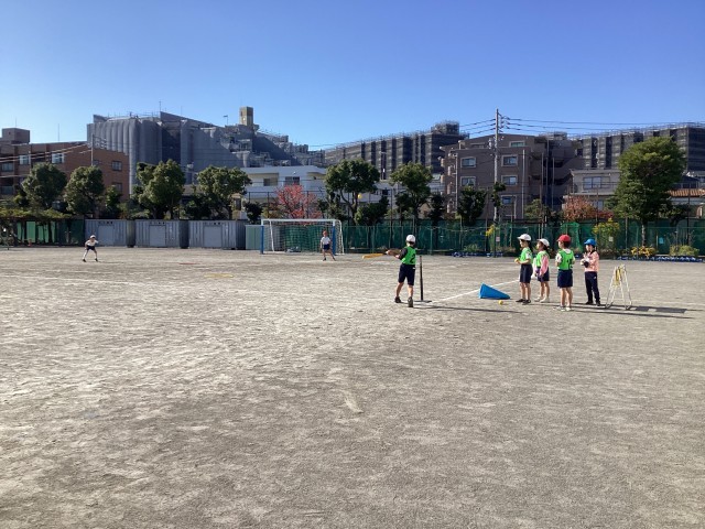 4年生は体育でティーボールのルールを簡素化したベースボール型ゲームの学習を行っています。