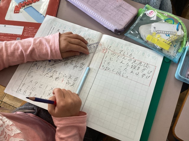 算数科「かけ算九九づくり」の学習では、1の段を最後に、九九を全て学習しました。めあてやまとめは自分の言葉で書けるように取り組んでいます。