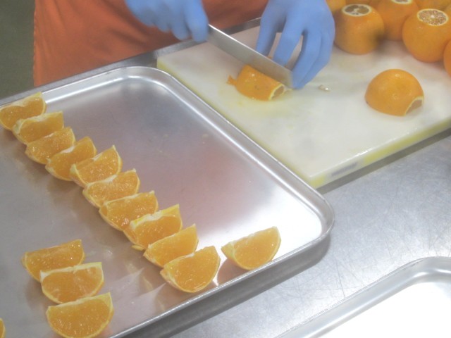 今しか食べられない旬のデザートです。給食では、できるだけたくさんの種類の旬の果物を取り入れていきたいと考えています。