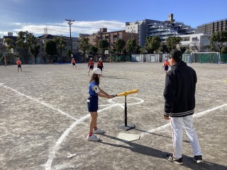 ジャイアンツアカデミーの方々に野球教室を開いていただきました。体育のティーボールでの動きに加え、ボールを投げる・ベースを踏んで走るという動きをしながら、楽しんでゲームをしました。
