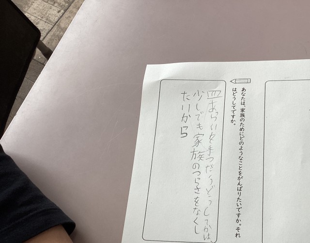 2学期も終わりに近づいてきました。道徳では、冬休みを間近に控え、家族のためにどんなことができるか、一人一人が考えました。具体的にどんなことで家族の力になれるか、たくさんの考えが出ました。ぜひ、家族の力になれる冬休みにしてくださいね!