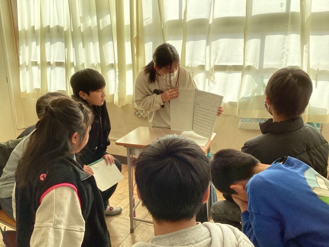 読書科で調べたことをグループに分かれて発表しました。司会やタイムキーパーを役割分担して自分たちで進めることができました。感想や質問をして互いに交流することで学びを深めました。次は縦割り班での発表です!「なるほど!」と言ってもらえるように頑張ってほしいです。