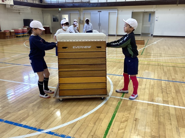 3年生は、体育で跳び箱運動に取り組んでいます。まずは安全第一!みんなで協力して場の準備をします。その後は、手のつき方や着地などに気を付けながら、開脚跳びや台上前転に取り組んでいます。だんだん上手になってきましたね!