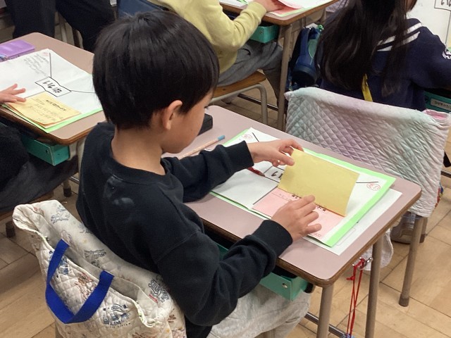 2年4組は、水曜日の5時間目に生活科「あしたへジャンプ」の授業で研究発表しました。全教員が集まる教室といつもと違う雰囲気に、4組の子どもたちは少し緊張していました。しかし、いつも通り、池田先生と授業をし、最後には「楽しかった」と振り返っていました。