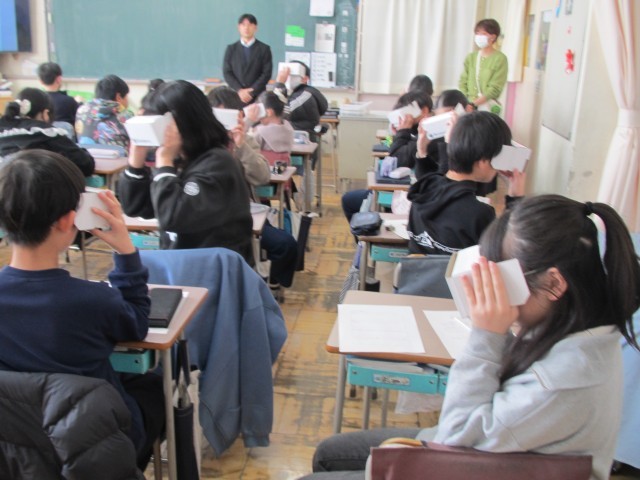 講師の先生をお招きしてキャリア教育を行いました。今回は福祉の分野から保育士・訪問入浴看護師・ホームヘルパーの方からオンラインでお話を伺ったり、福祉施設での仕事内容についてVR体験をしたりしました。
