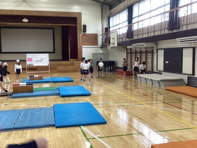 【4年生】体育 跳び箱運動 公開日 2026/02/17 更新日 2026/02/17 南小トピック 4年生の体育館体育は、跳び箱に取り組んでいます。今日は台上前転の練習をしました。「踏み切り」「着手」「着地」の3つのポイントに気をつけて跳ぶことを意識しました。