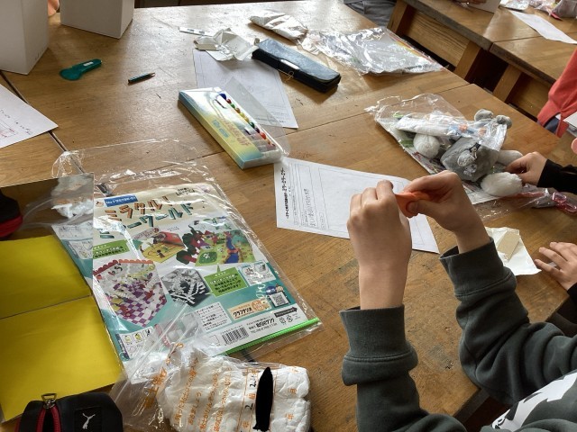 紙粘土や画用紙などを使って不思議な世界を表現しています。