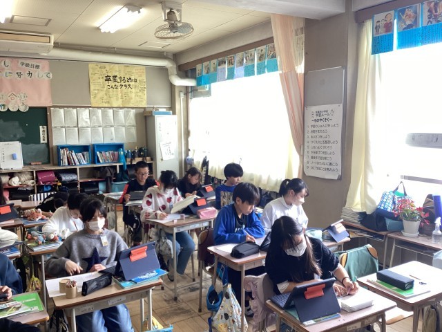 自然における生物・水・空気などの視点から、環境を守りつつ共存していけるようにどうすれば良いかという問題について各自がまとめています。