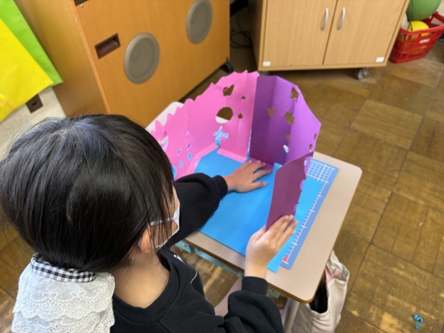 【2年生】図画工作科「まどのあるたてもの」 公開日 2026/03/04 更新日 2026/03/04 南小トピック 図工「まどのあるたてもの」の学習では、画用紙にカッターナイフで窓をたくさん開け、建物を作りました。