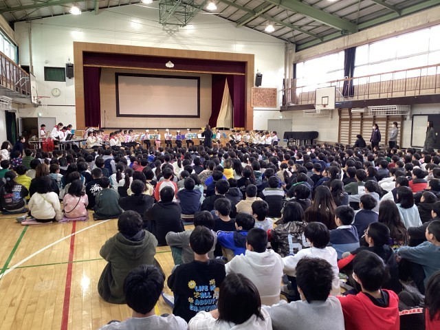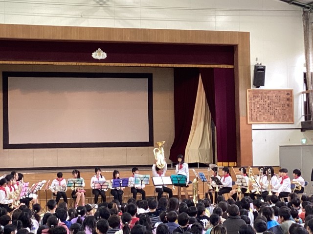 体育館で、NSBさよならコンサートを行いました。1年間の集大成として、全校児童の前で堂々と演奏を発表しました。
