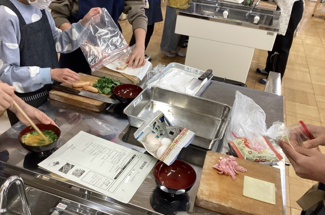 6年生最後の調理実習は、「卵を使ったおかず」に挑戦しました。自分で手順を調べ、ベーコンやチーズなどの加工食品や野菜を追加してそれぞれ調理したいものに挑戦しました。