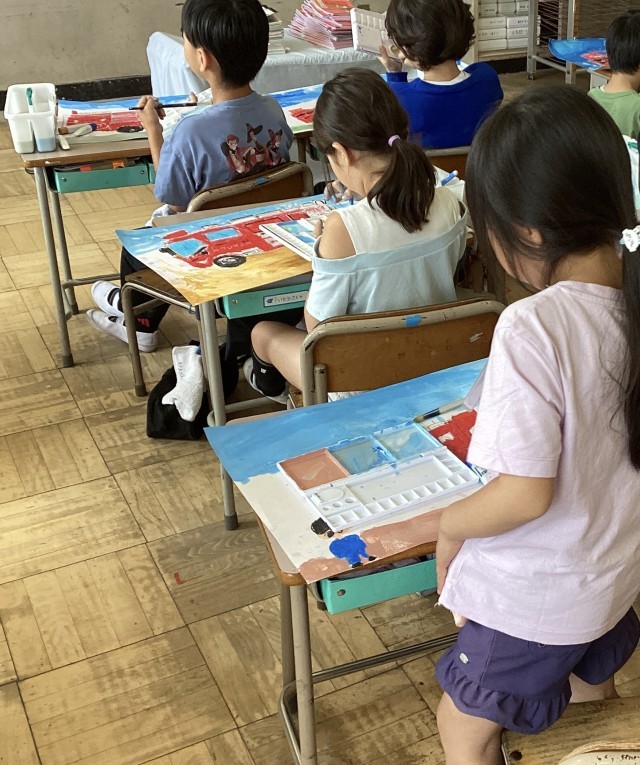 【2年生】消防写生会 背景の色つけ