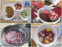 います。デザートは、カルピスと粉寒天を煮て固めたゼリーです。
