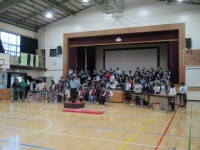 ふれあいコーナーでは、クラスごとにモルモットやウサギなどの小動物を胸に抱きました。子どもたちからは「ふわふわしている」「あったかい」「ふるえている」などの声も聞かれ、命の温かさを感じることができた様子でした。