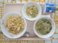 1月18日(水) 公開日 2023/01/19 更新日 2023/01/19 給食 ニンニクを炒めたものを混ぜて炊き、ガーリックライスに しました。ほんのり香りがして食欲の出るごはんになり、 ソースともよく合います。ホワイトソースは、バターや小 麦粉を使わずに、米粉でとろみをつけています。りんごは 山形県産のサンふじが届きました。