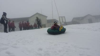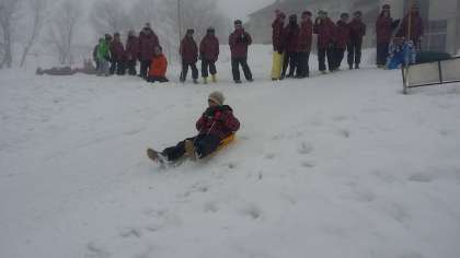 ウインター2日目【ソリ遊び】 公開日 2015/02/25 更新日 2015/02/25 南小トピック ソリ遊び用のコースでは、ソリやチューブで滑りました。けっこうスピードが出るので、悲鳴をあげている子もいました。