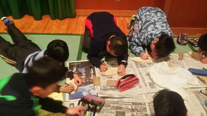 雪だるまの絵が圧倒的に多いです。あと、今日の日付を書いている子もいました。手作りのおみやげができあがりました。