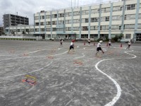 段ボールを組んだり繋いだりした形から、やりたいことを思いつき造形遊びをしました。友達と入れる大きな家をつくり、部屋の中には頑丈なテーブルや椅子、テレビなど、体全体を使い、友達と協力して楽しく活動することができました。