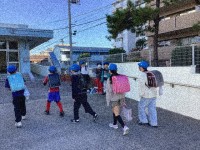 普段履いている靴と違って硬いので、苦戦しているようです。