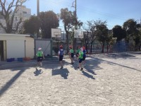 生活科「むかしからつたわるあそびをたのしもう」の学習で、竹とんぼと羽つきを校庭で...