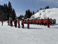 スキー靴に履き替え、インストラクターの先生方と顔合わせをしました。この後、グルー...