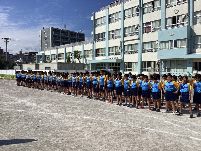 体育大会に向けて、5年生中心に全校からエールを受け取りました。目標に向かってよ...