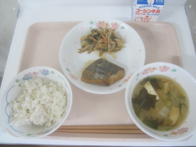 ~こんだて~・ご飯・鰆の西京焼き・野菜のごま和え・生揚げと白菜のみそ汁・牛乳鰆(...