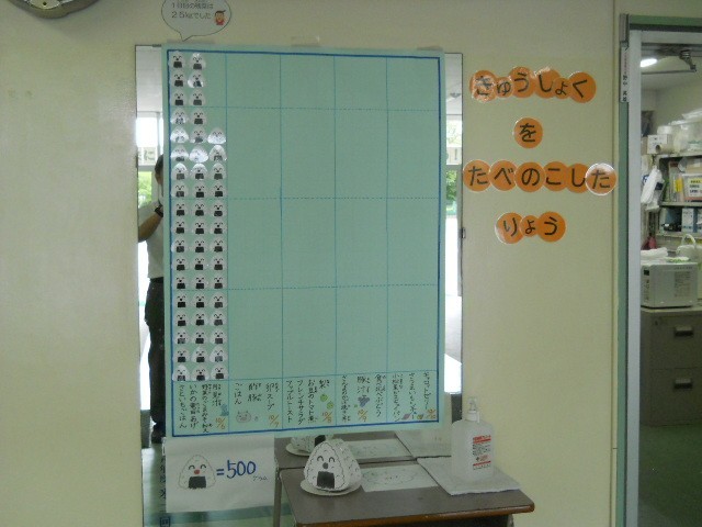 10月6日(月)から10日(金)までの間、もりもり給食ウイークを実施しています。食事の重要性、感謝の心を育てられるよう、残菜が10%以下を目指して取り組んでいます。主事室前に掲示した残菜量に子供たちは驚いていました。休み時間には元気に遊んで、給食をたくさん食べましょう。残菜の減量を達成できた学級は、全校朝礼で表彰します。
