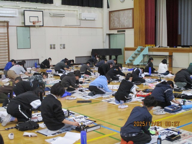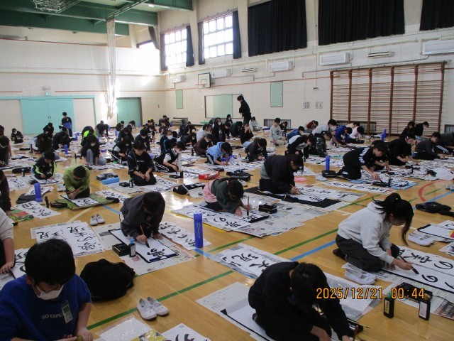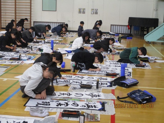 年明け1月の書初め大会に向けて、学年で練習を行いました。