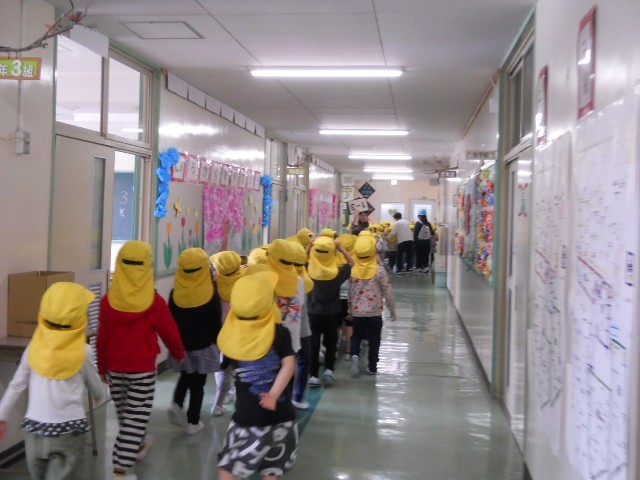 4月14日(火)避難訓練を行いました。想定は地震です。1年生は、南二小で初めての避難訓練でしたが、放送の指示で、しっかり机の下にもぐり、落ち着いて行動し、自分の身は、自分で守ることができました。校庭に集まったときは、2年生から6年生までの児童たちが、静かに待って、しっかり手本を示してくれました。来月は、引き渡し訓練があります。保護者の皆様、ご協力いただきますよう、よろしくお願いします。