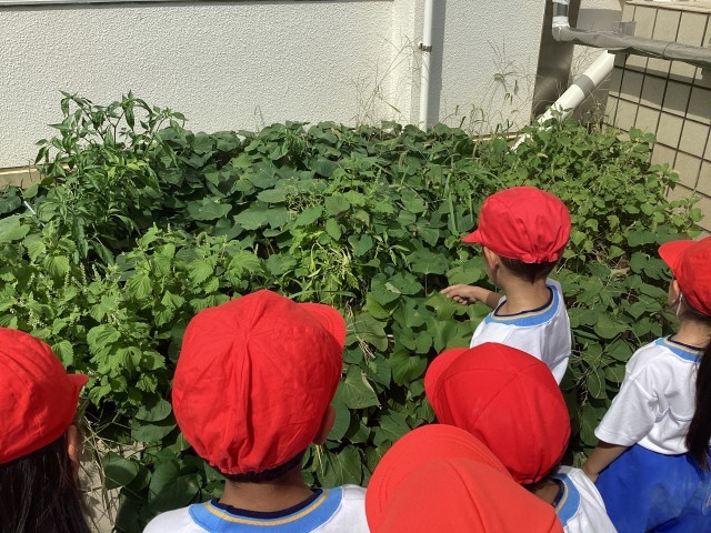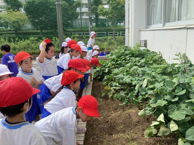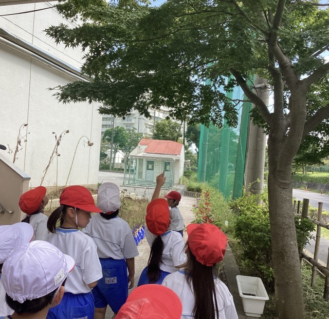 暑い日が続き、秋はまだ遠く感じますが自然は少しずつ変化しています。生活科「たのしいあきいっぱい」の学習で、校庭で秋探しをしました。
