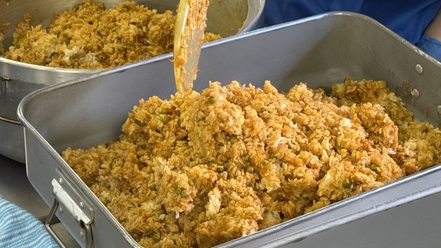 チキンライスに入っている鶏肉は元気な体を作る元になる赤のなかまです。