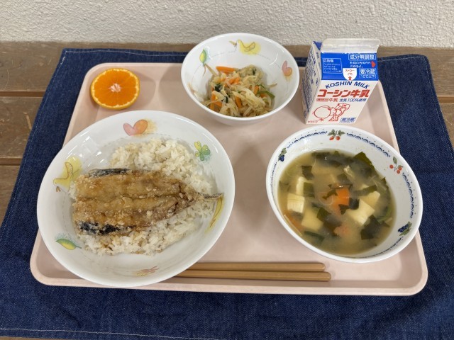 今日の給食ではいわしのかば焼き丼を作りました。