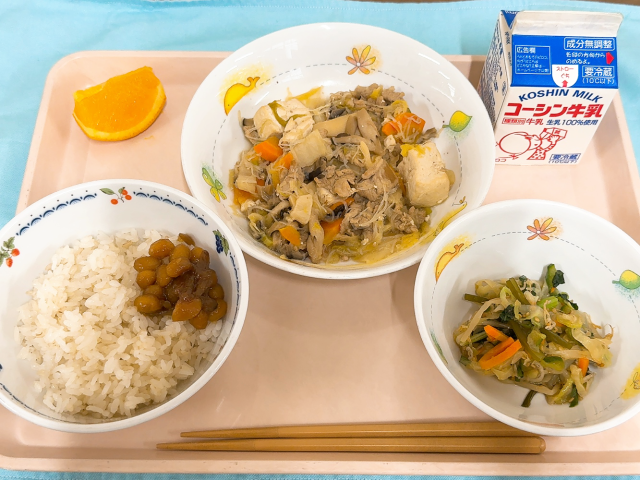 肉豆腐も、今年度は初めて作った料理です。煮物も食べ慣れなくて苦手と思うかもしれませんが、給食は新しい味と出会ったり、挑戦したりするきっかけを作る役割があります。