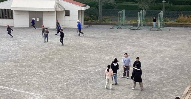 中には、短なわの練習に取り組んだり、友達と長縄を楽しむ児童も。