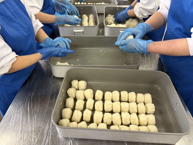 調理員さんが三小500人分、1000個のおにぎりを給食に間に合うように握ってくれました!