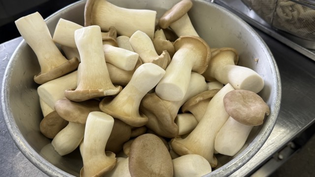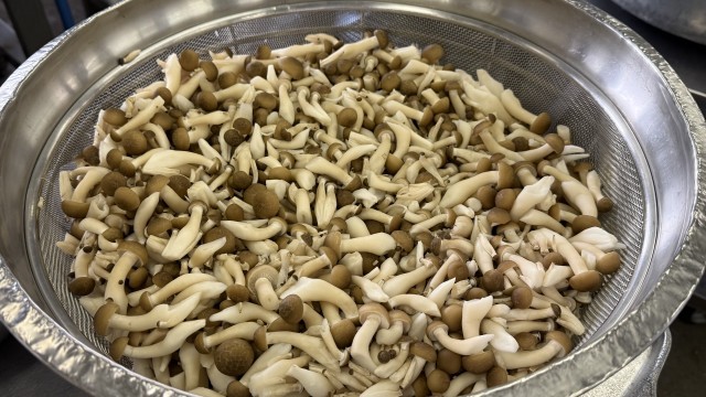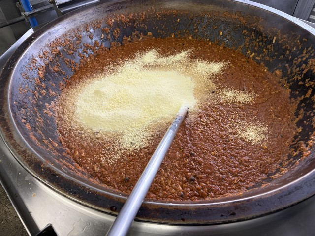 きのこが苦手な児童は多いですが、スパゲティのトマトソースと一緒に煮詰めることで、食べやすくしています。
