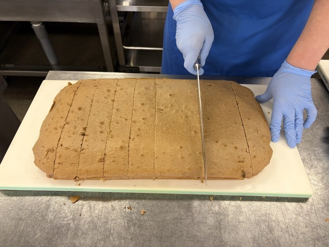 今月はココアパウダーを使用したココアケーキを給食室で手作りしました。