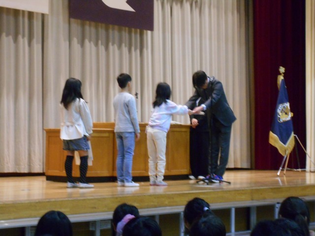 各クラスの代表児童が校長先生より修了証をいただきました。