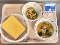 ごはん・豆腐の中華煮・大豆いりこ・メロン・牛乳です。今日は大豆まつり!運動会の練習で疲れた体を元気にしてくれる大豆を豆腐と豆で料理に使って7います。大豆いりこは意外と人気メニューで、食べ残しが少ないです。
