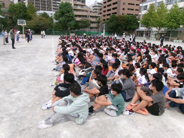 砂ぼこりが舞う予告なしの避難訓練でしたが、真剣に訓練ができました。さすが西葛西小の子供たちですね!