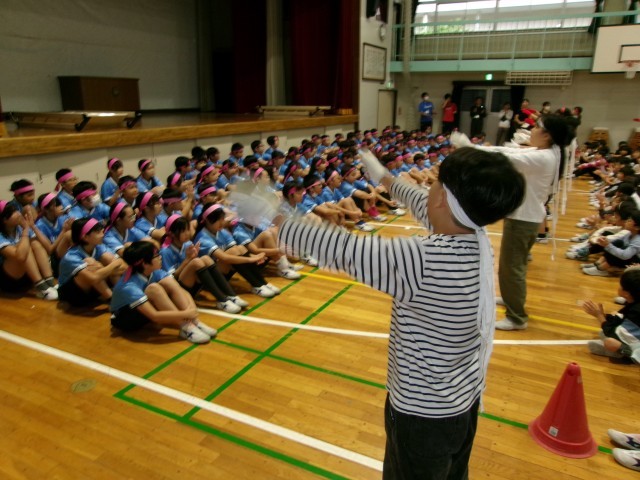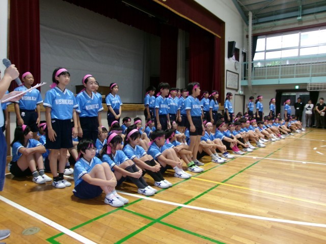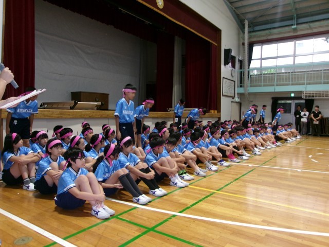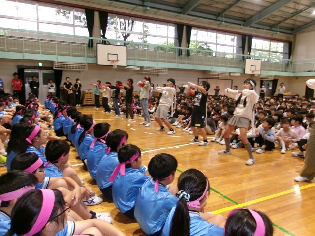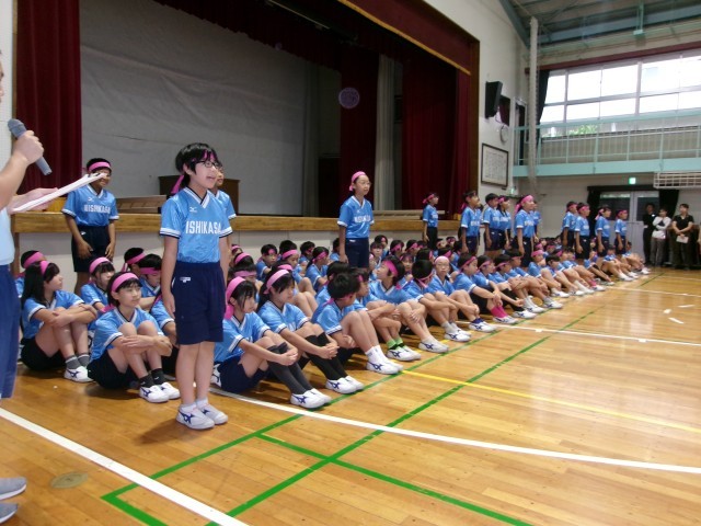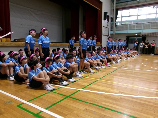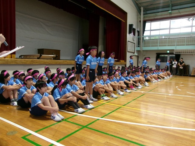 明日の体育大会に向けて1~5年生が6年生を応援しました。6年生は、とても凛々しい表情でした。がんばってください!