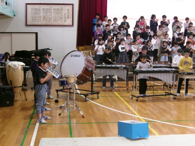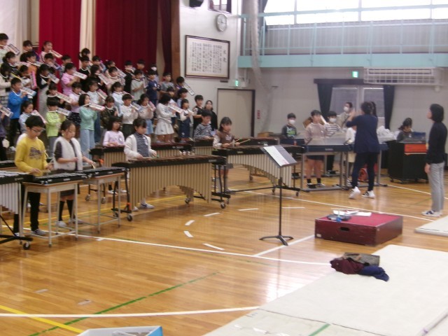 2年生は、合奏の練習をしていました。初めての合同練習でしたが、がんばって音を合わせていました。