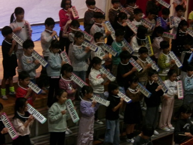 リズムに乗って体を揺らしながら歌ったり、演奏したりしていました。とてもかわいかったです。