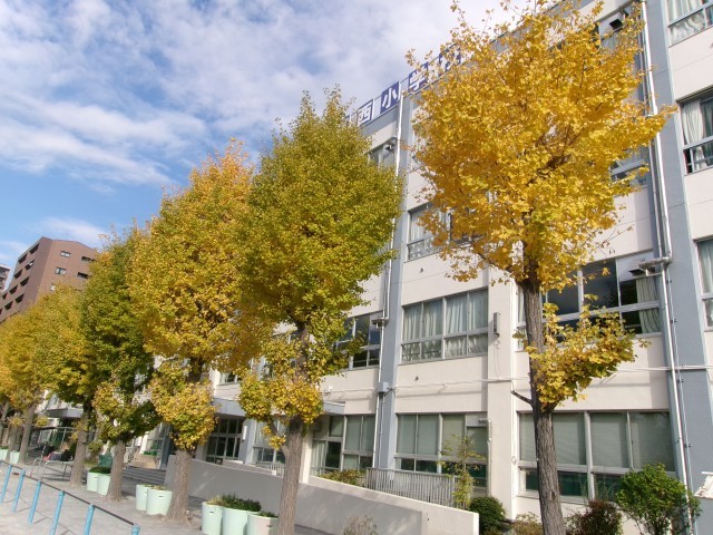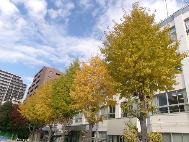 葉がすっかり色づきました。主事さんたちは、掃き掃除で毎日大忙しです。