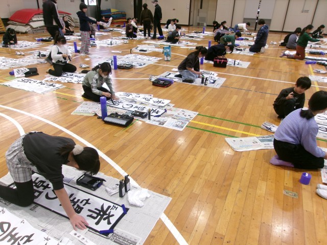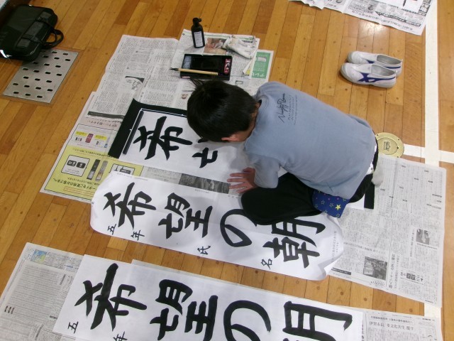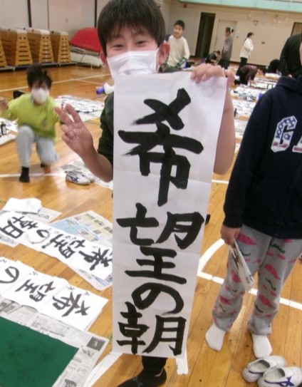 今日は5年生が書き初めをしていました。どの子も気持ちを込めて書けていました。