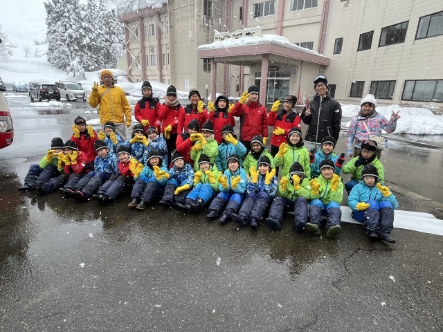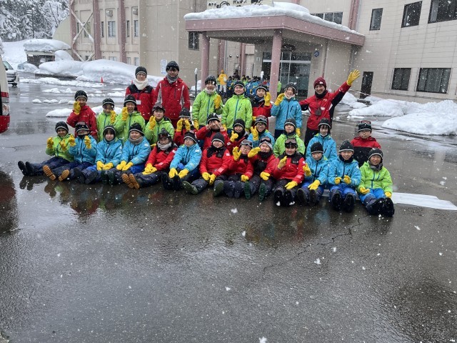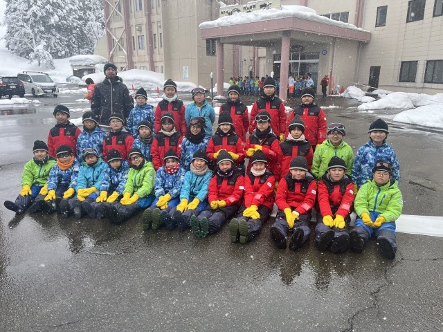 宿の前でクラス写真を撮りました。みんなカッコいいですね!