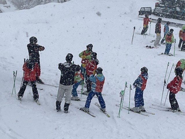 各グループに分かれて、板のつけ方や歩き方、上手な転び方など、基本的なことをしっかり教わります。