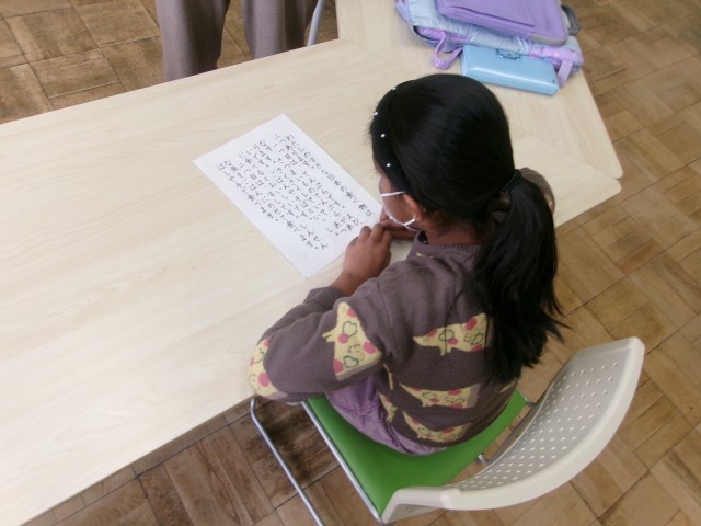 「味」や「食感」をカードで確認し、自分の国の好きな料理を紹介する作文を書いて、発表しました。