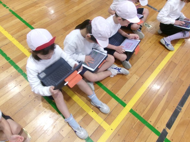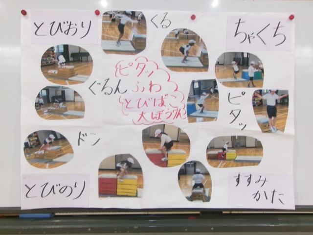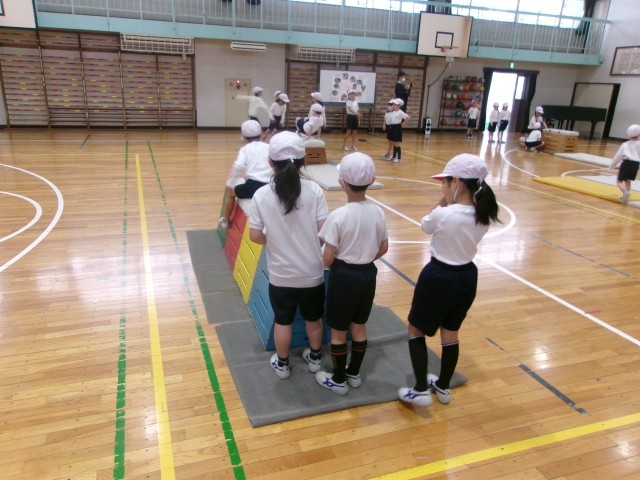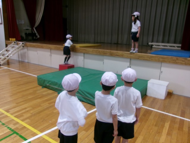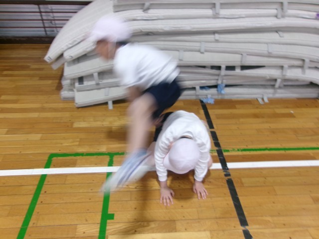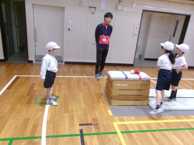 跳び箱を使った運動遊びの場がたくさん設けられており、子供たちは意欲的に取り組んでいました。